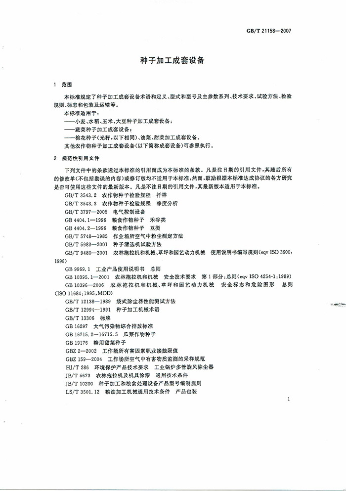 GB/T15671-2009農作物薄膜包衣種子技術條件國家標準